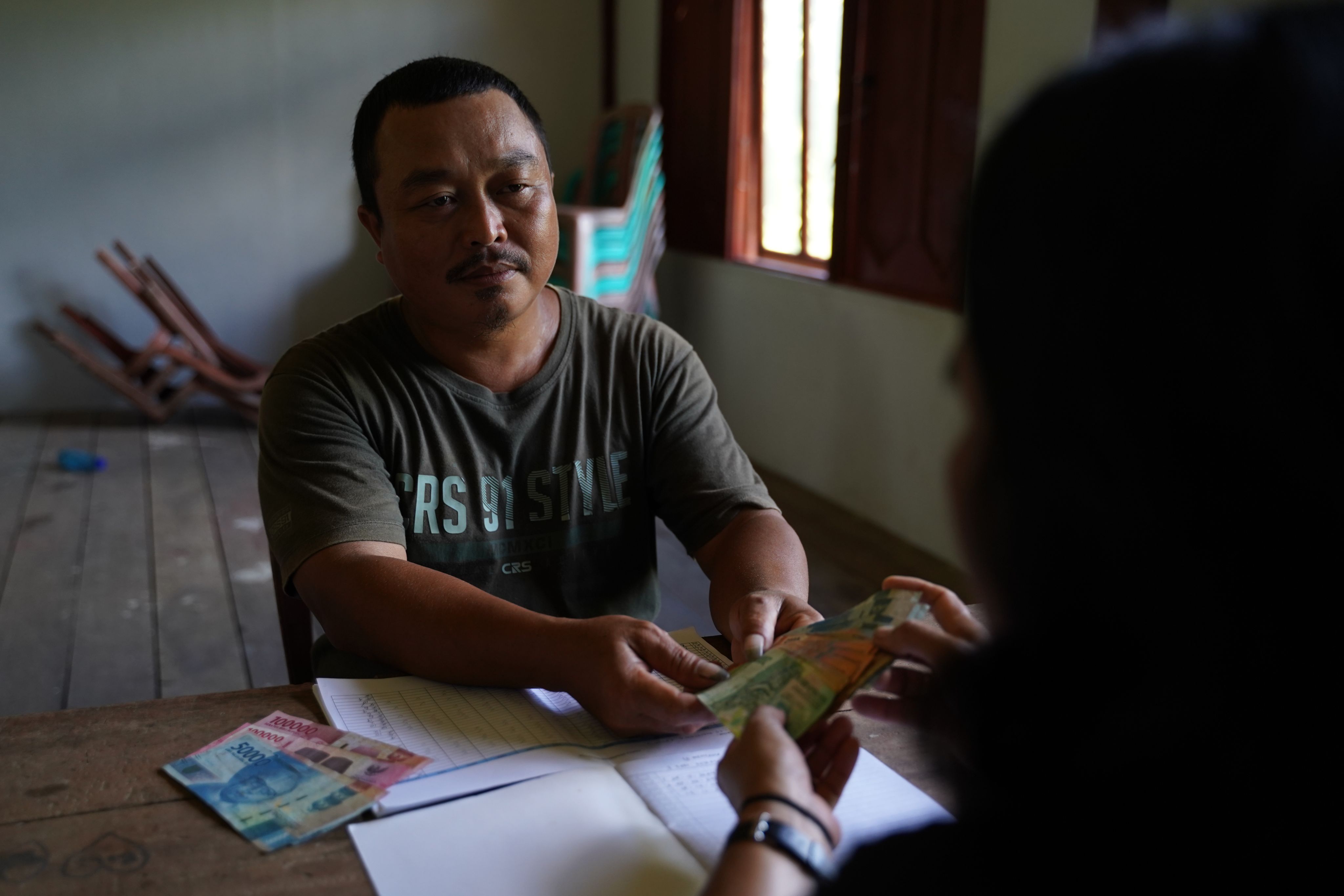 But installation was only the first step. Just outside his house, a small water meter is attached to the pipe that delivers water to Rizal’s family. Each week, a staff member from the village-owned enterprise records the household’s usage and collects a modest payment. The revenue is set aside for maintenance and future repairs, helping ensure the system continues to function long after installation.